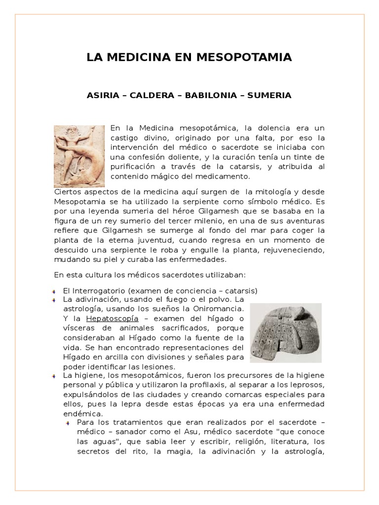 Historia de la Medicina: Culturas Arcaicas | PDF | Medicina | Mesopotamia