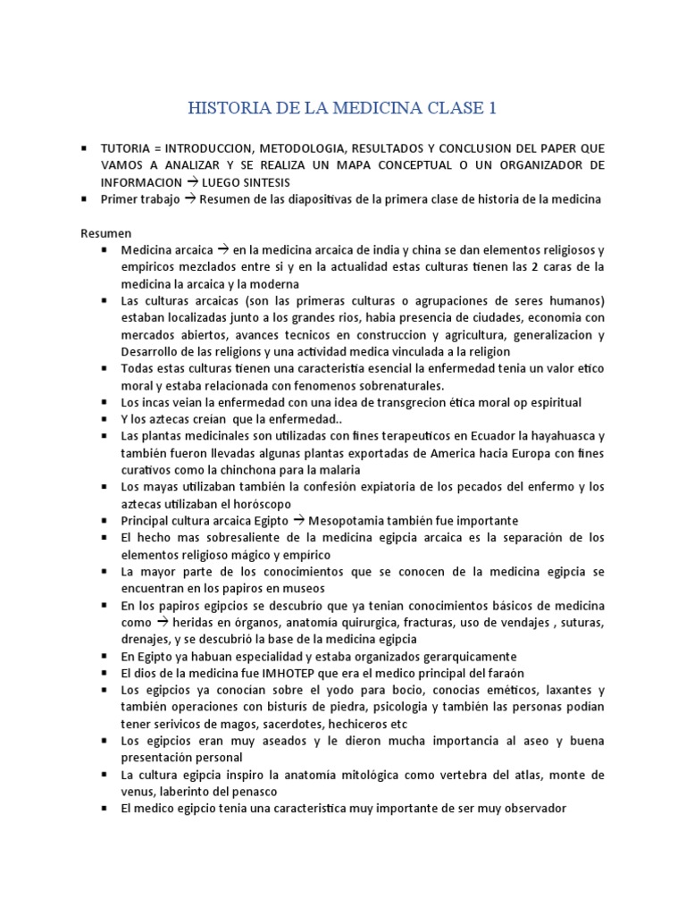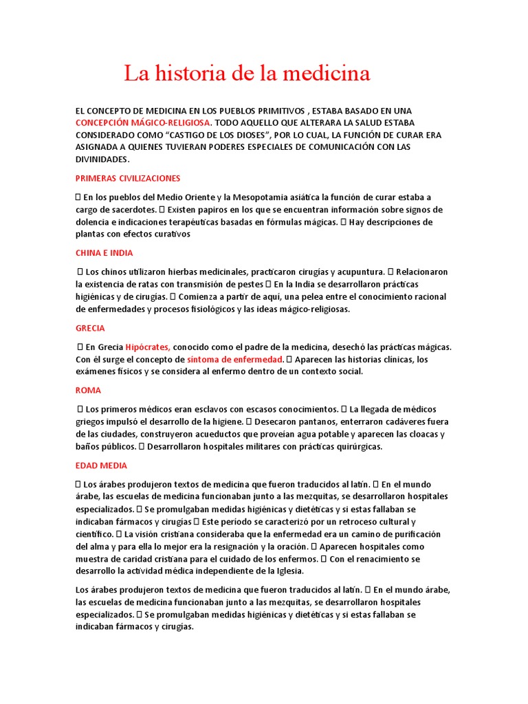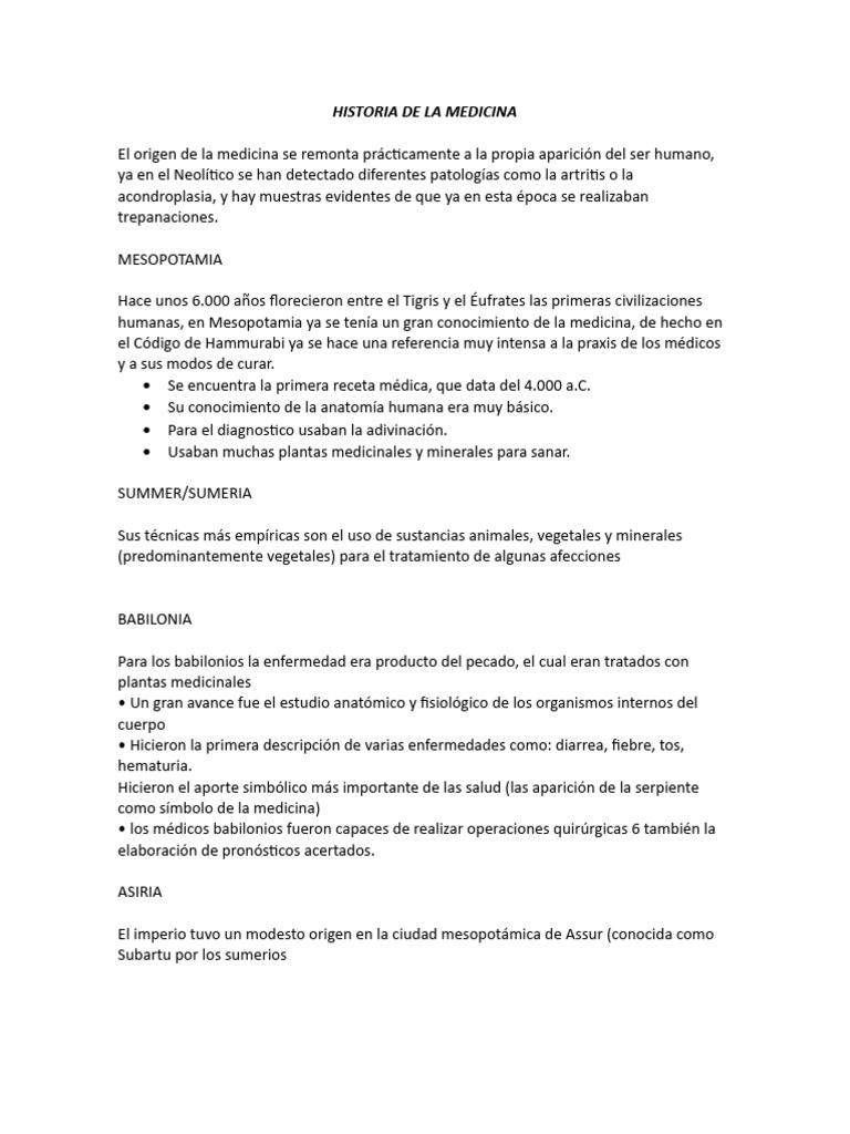 SOLUTION: Resumen completo de la historia de la medicina - Studypool