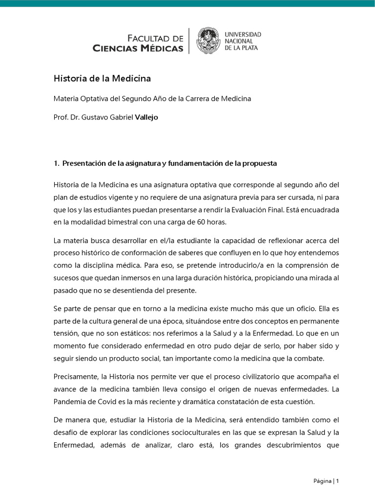 Programa Historia de La Medicina 2025 | PDF | Medicina | Conocimiento
