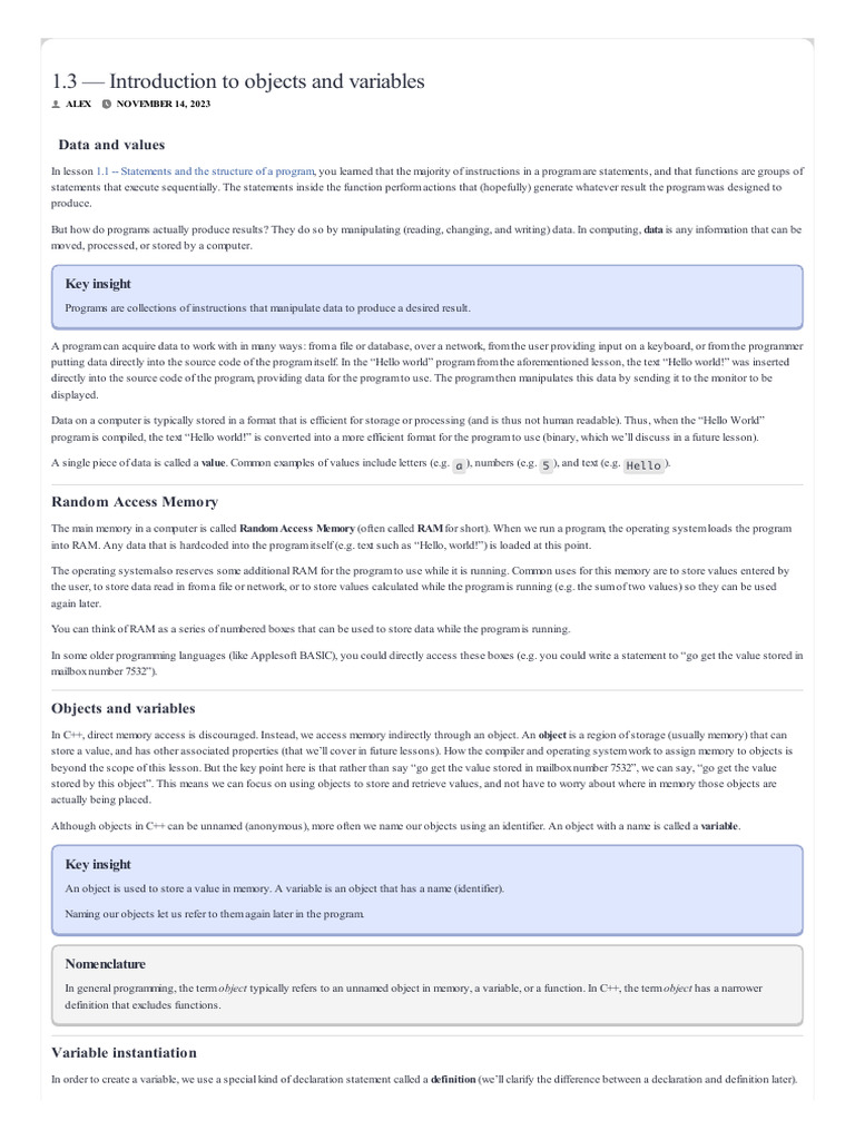 15 Introduction To Objects and Variables | PDF | Variable (Computer ...