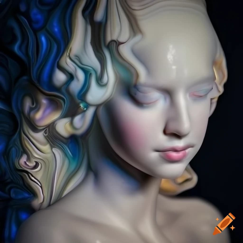 Ultra hd sculpture with intricate details and opalescent marble figures