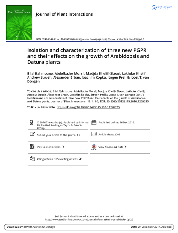 (PDF) Interaction between Plants and PGPR for Sustainable Development