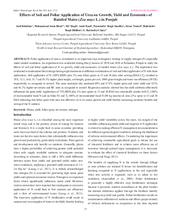 (PDF) Effect of Application of Nano-urea on Maize (C-1415 Variety ...