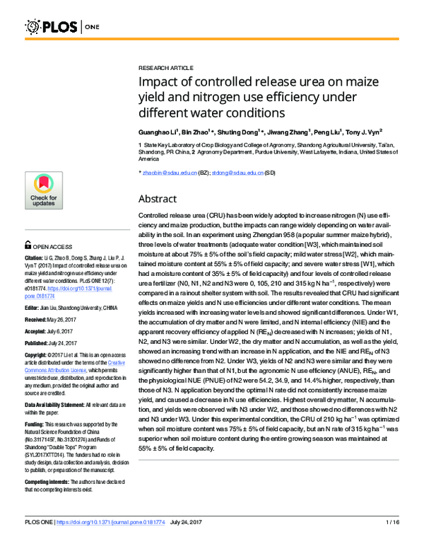 (PDF) Impact of controlled release urea on maize yield and nitrogen use ...