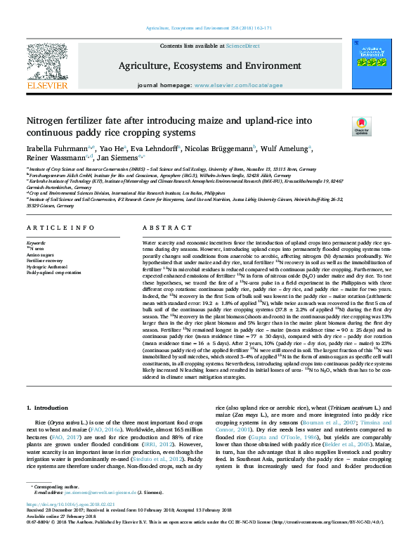(PDF) Nitrogen fertilizer fate after introducing maize and upland-rice ...