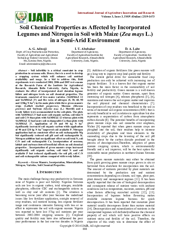 (PDF) Soil Chemical Properties as Affected by Incorporated Legumes and ...