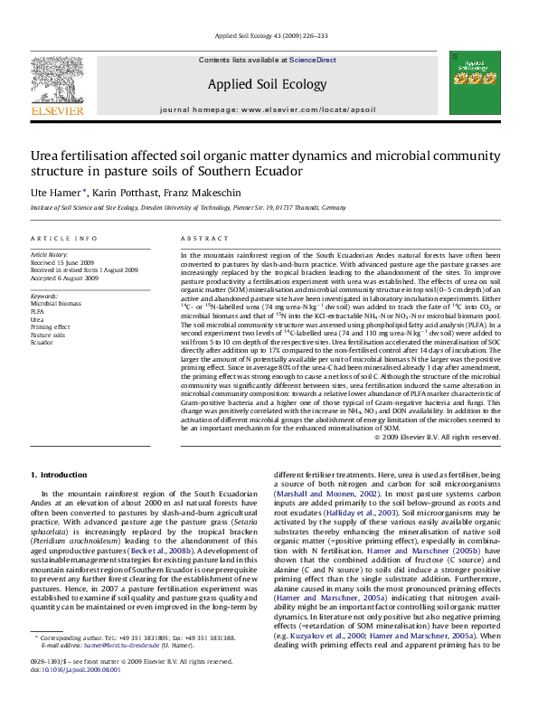 (PDF) Urea fertilisation affected soil organic matter dynamics and ...