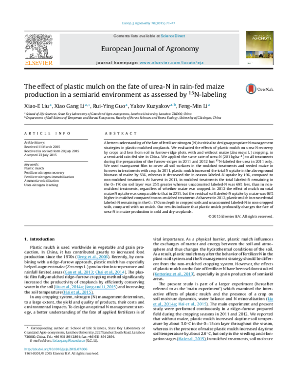(PDF) The effect of plastic mulch on the fate of urea-N in rain-fed ...