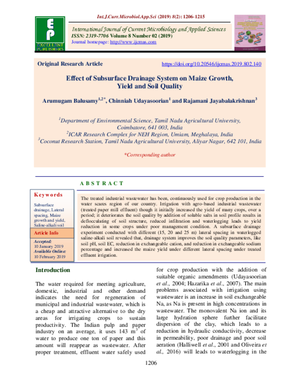 (PDF) Effect of Subsurface Drainage System on Maize Growth, Yield and ...