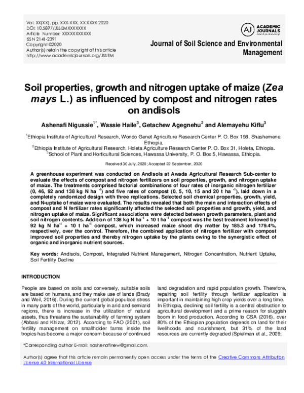 (PDF) Soil properties, growth and nitrogen uptake of maize (Zea mays L ...