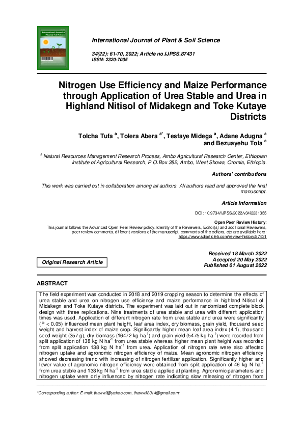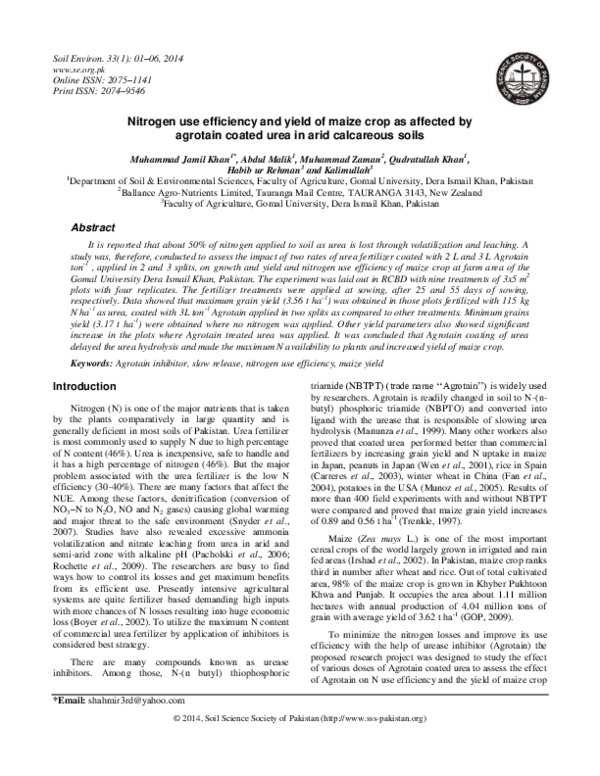 (PDF) Impact of UREA Stable on Soil Property, Nitrogen Use Efficiency ...