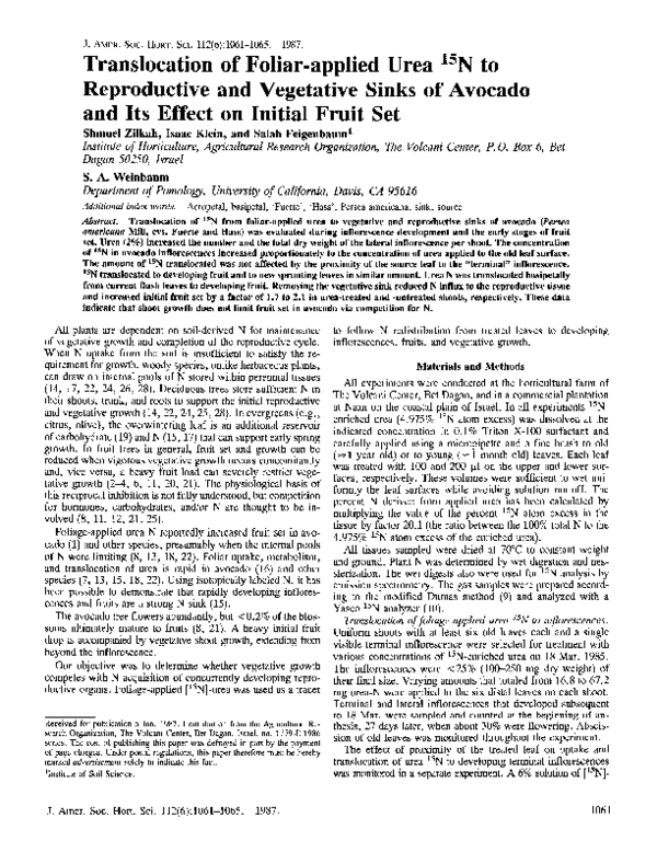 (PDF) Translocation of Foliar-applied Urea 15N to Reproductive and ...