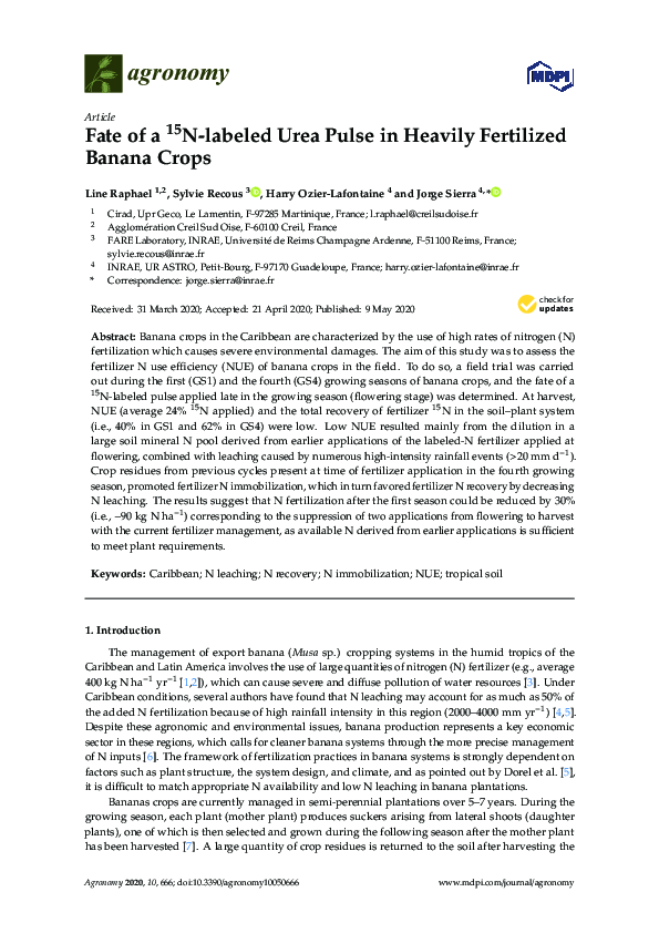(PDF) Fate of a 15N-labeled Urea Pulse in Heavily Fertilized Banana Crops