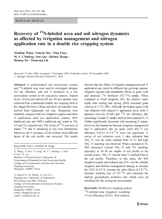 (PDF) Optimal N management affects the fate of urea-15N and improves N ...