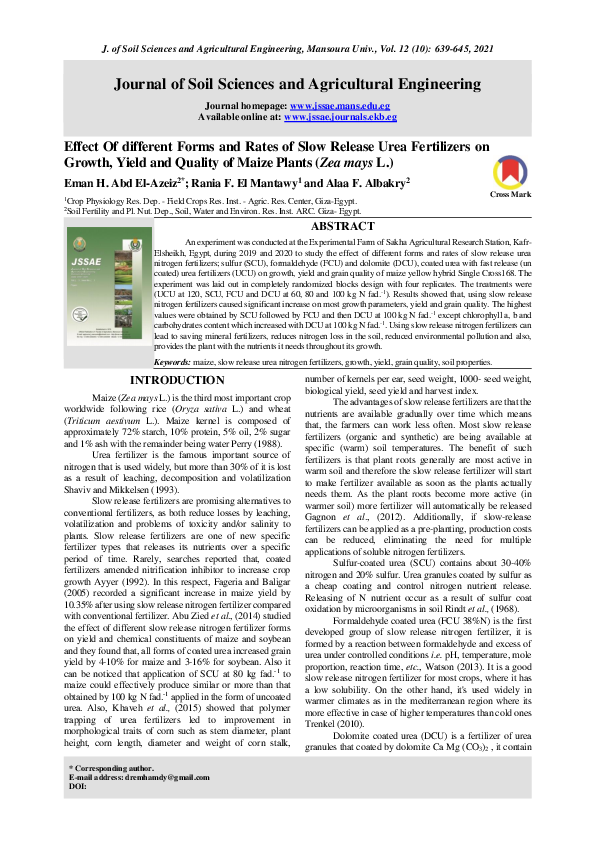 (PDF) Effect Of different Forms and Rates of Slow Release Urea ...