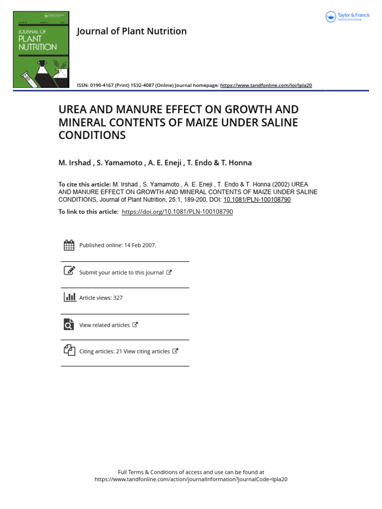 Urea and Manure Effect On Growth and Mineral Contents of Maize Under ...