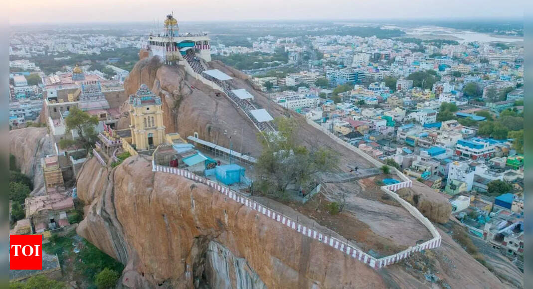 The 83m high Rock Fort and Ucchi Pillayar Ganesha Koil Kovil temple in ...
