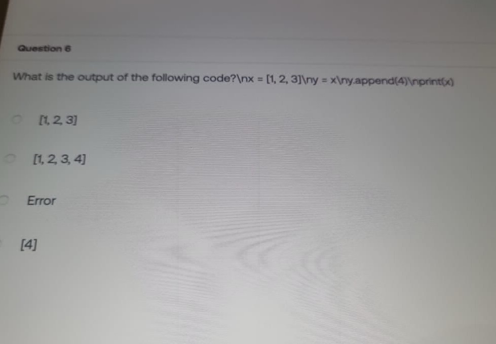 Solved QUESTION 6 What is the output of the following Python | Chegg.com
