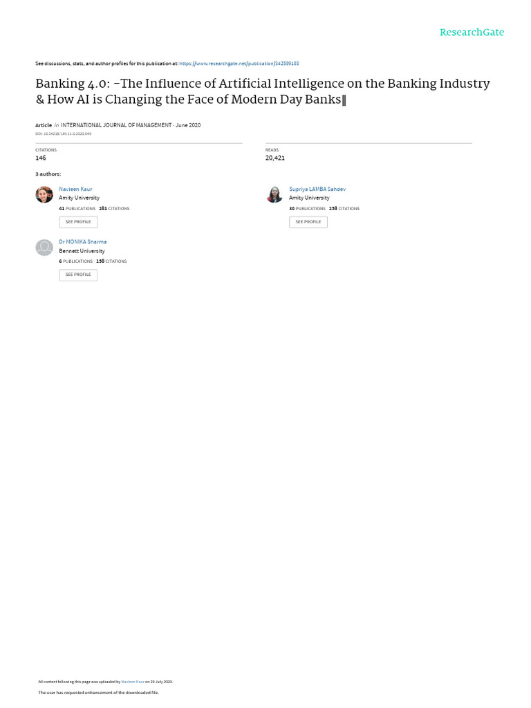 (DONE) Banking4.0InternationalJournalofManagement | PDF | Artificial ...