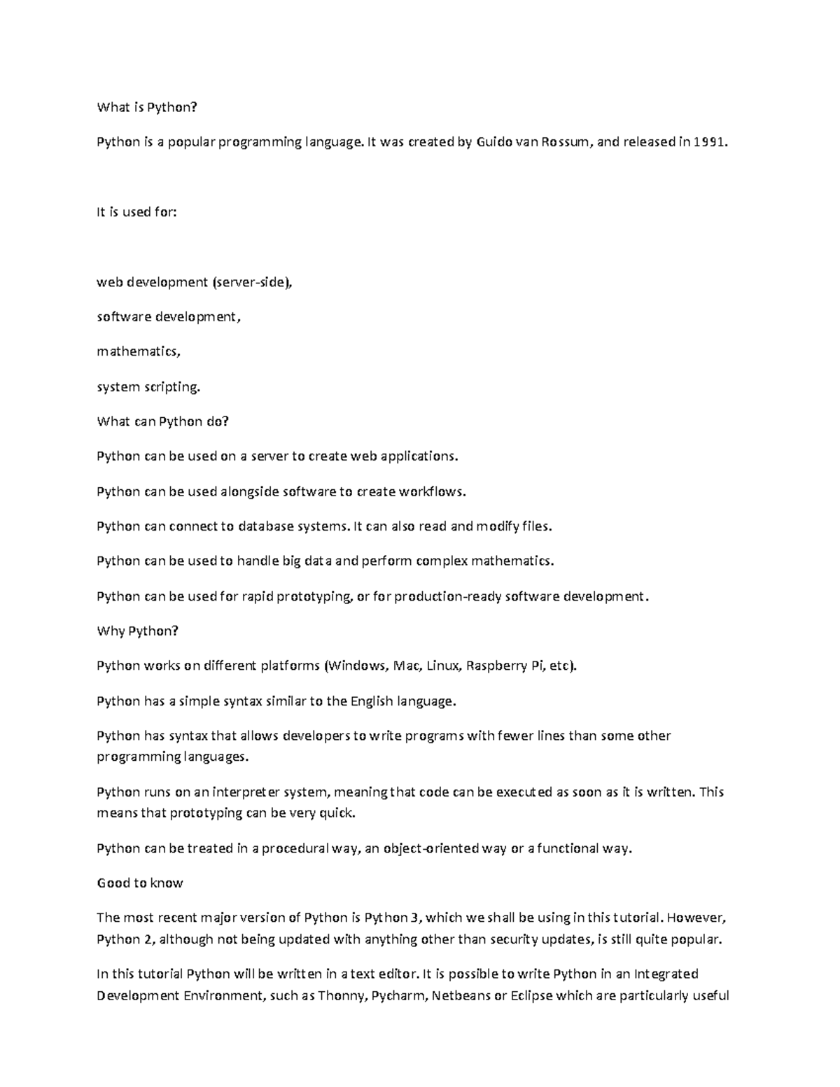Introduction to Python - What is Python? Python is a popular ...