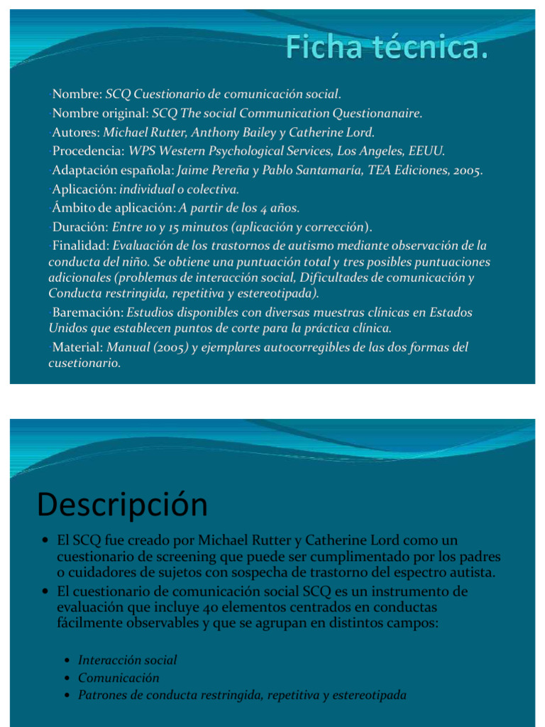 SCQ: Cuestionario de Comunicación Social | PDF | Espectro autista ...