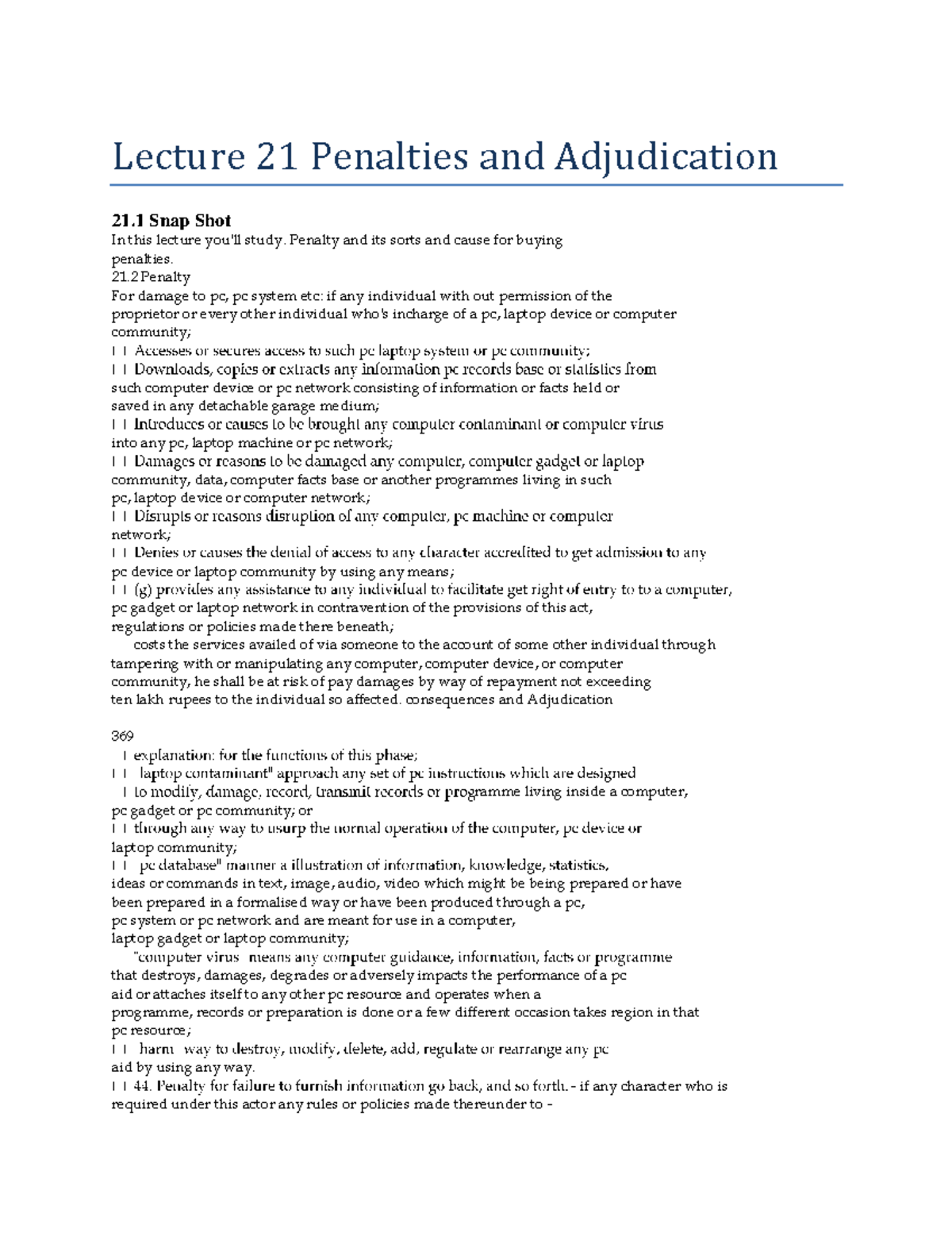 Lecture 21 Penalties and Adjudication - Lecture 21 Penalties and ...