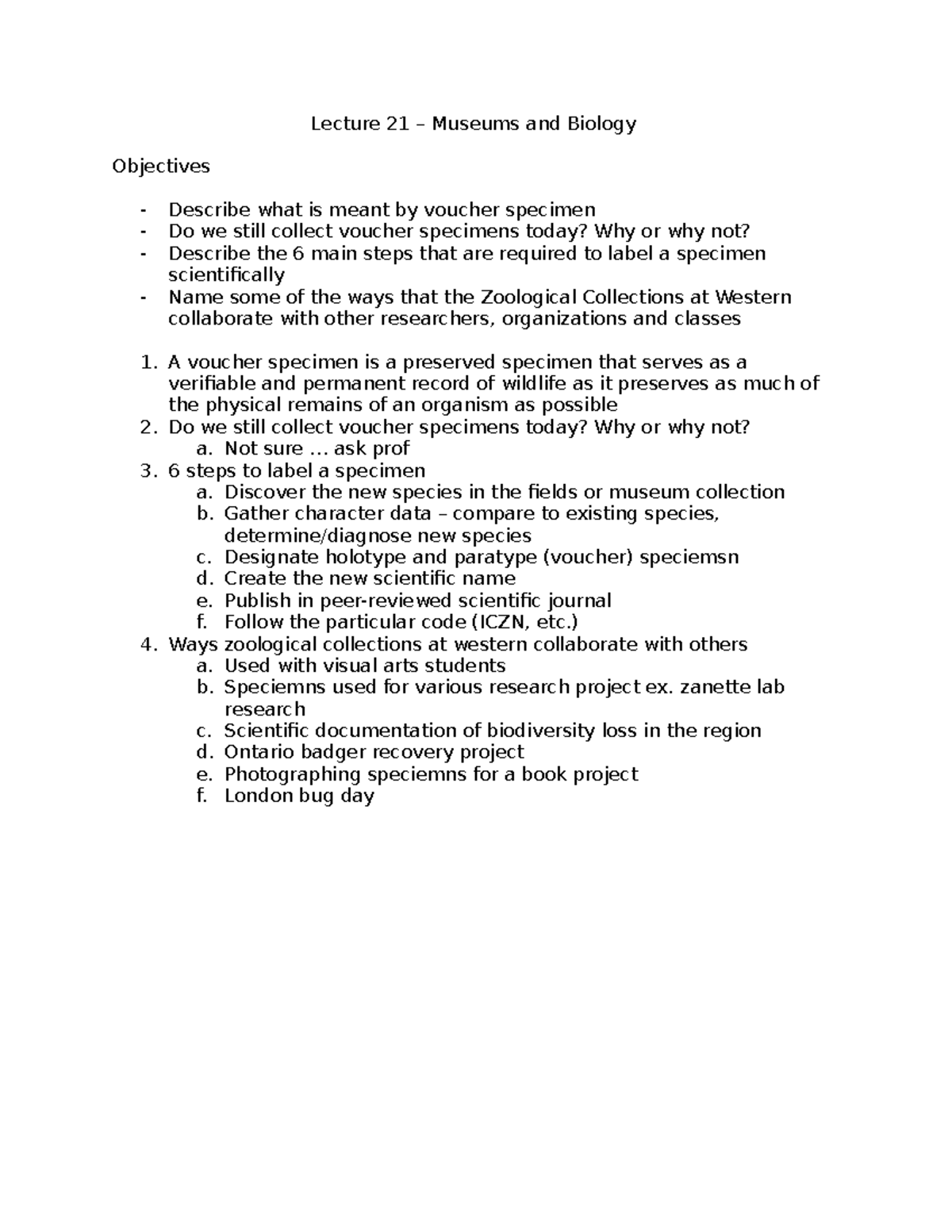 Lecture 21 - Museums and Biology - Lecture 21 – Museums and Biology ...