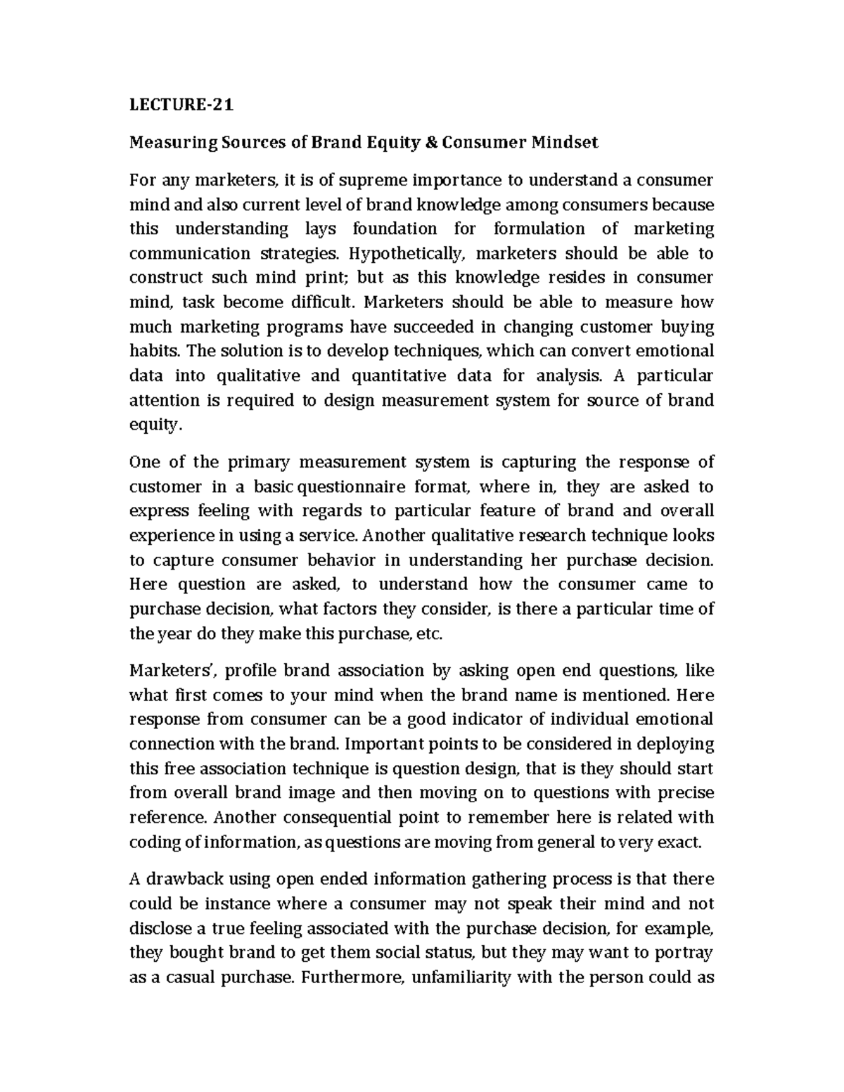 Lecture 21: Understanding Brand Equity & Consumer Mindset Insights ...