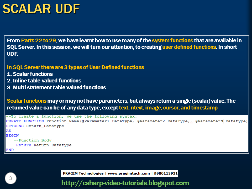 Sql server, .net and c# video tutorial: Part 33 – Functions – Important ...
