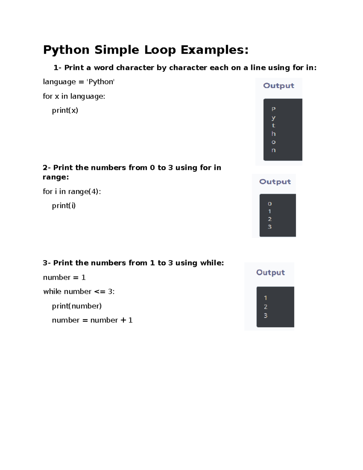 Python Loop Examples 3 - Cs115 - Python Simple Loop Examples: 1- Print ...