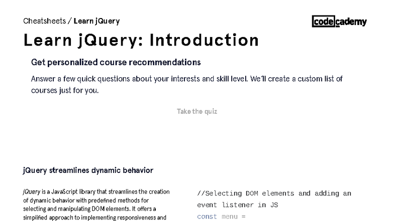 JQuery Intro Cheatsheet: Key Concepts & Usage Guide - Studocu