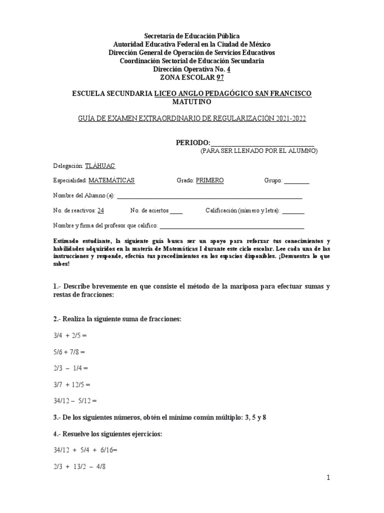 Guía de Examen Extraordinario 2021-2022 | PDF | Matemáticas ...