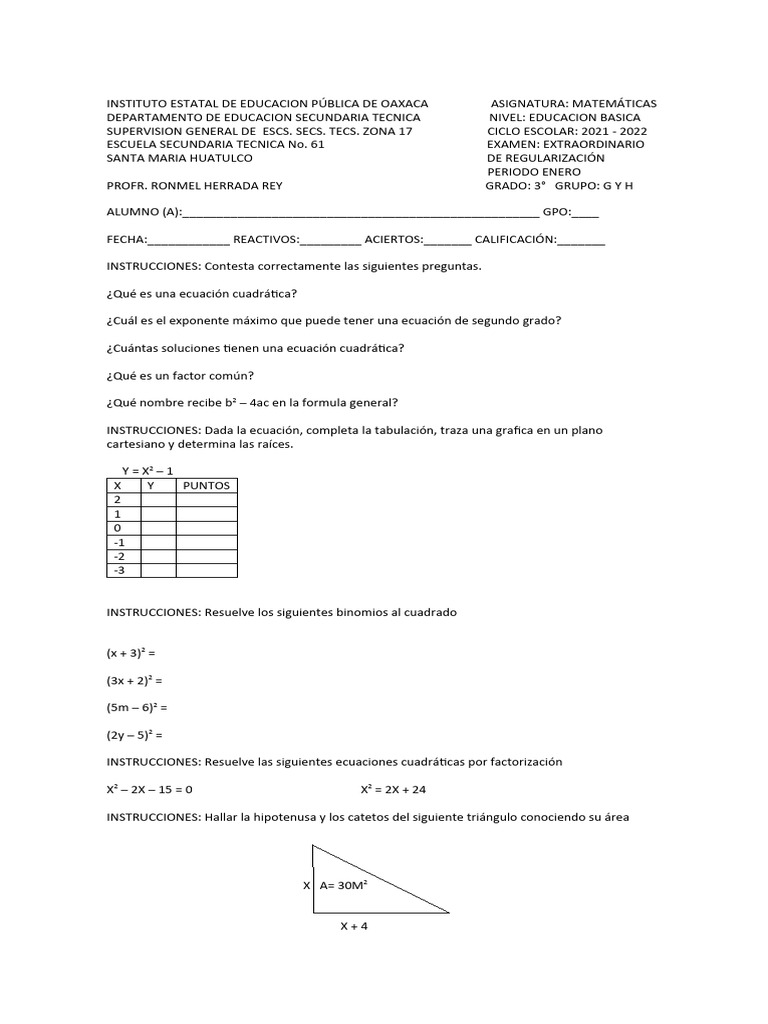 Examen Extraordinario 2021 - 2022 | Descargar gratis PDF | Triángulo ...