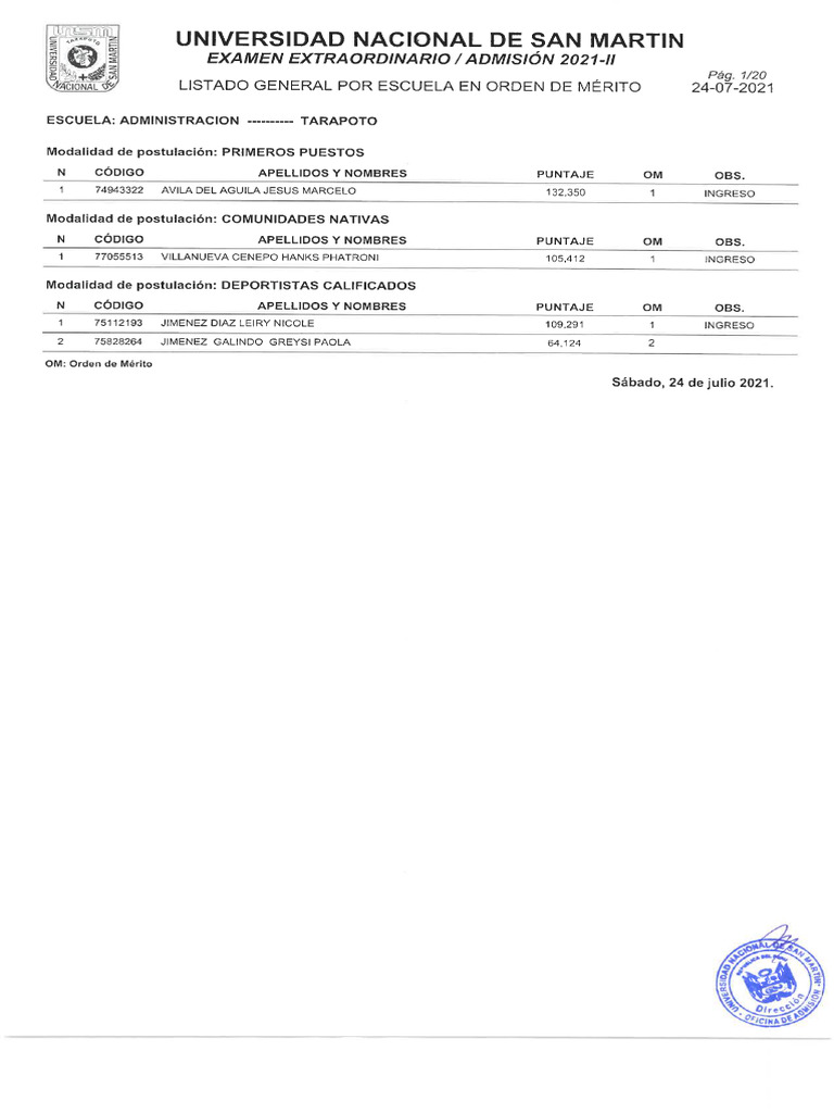 Resultados Del Examen Extraordinario 2021-II | PDF
