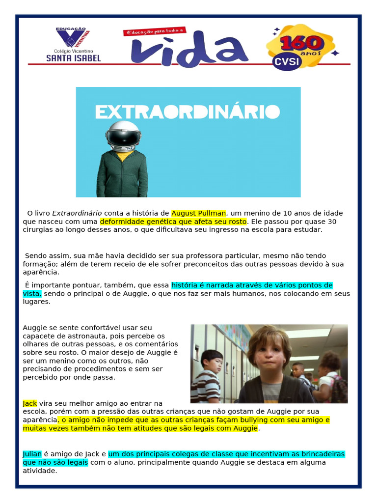 Resumo do Livro "Extraordinário" | PDF | Empatia