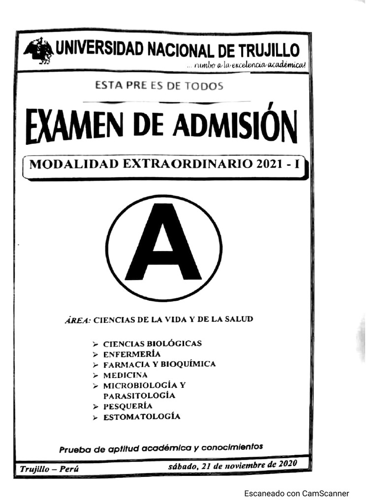 Examen Extraordinario UNT 2021 I | PDF
