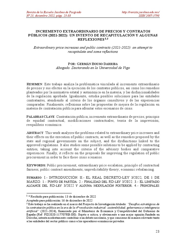 Incremento Extraordinario de Precios y Contratos Públicos, Período 2021 ...