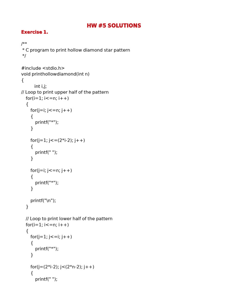 Print Hollow Diamond Pattern in C Using For Loop | Course Hero