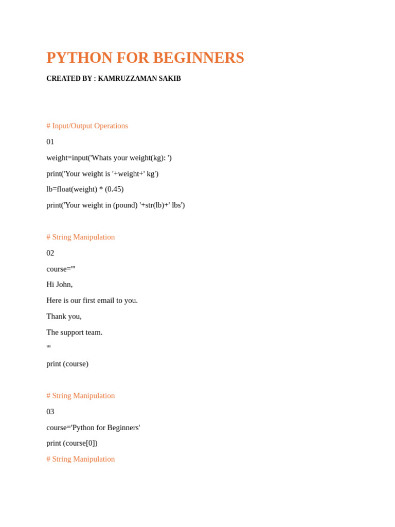 Python Coding For Beginners - Coding, Practice, PDF, Examples