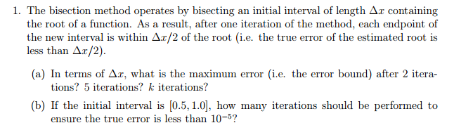 Solved The bisection method operates by bisecting an initial | Chegg.com