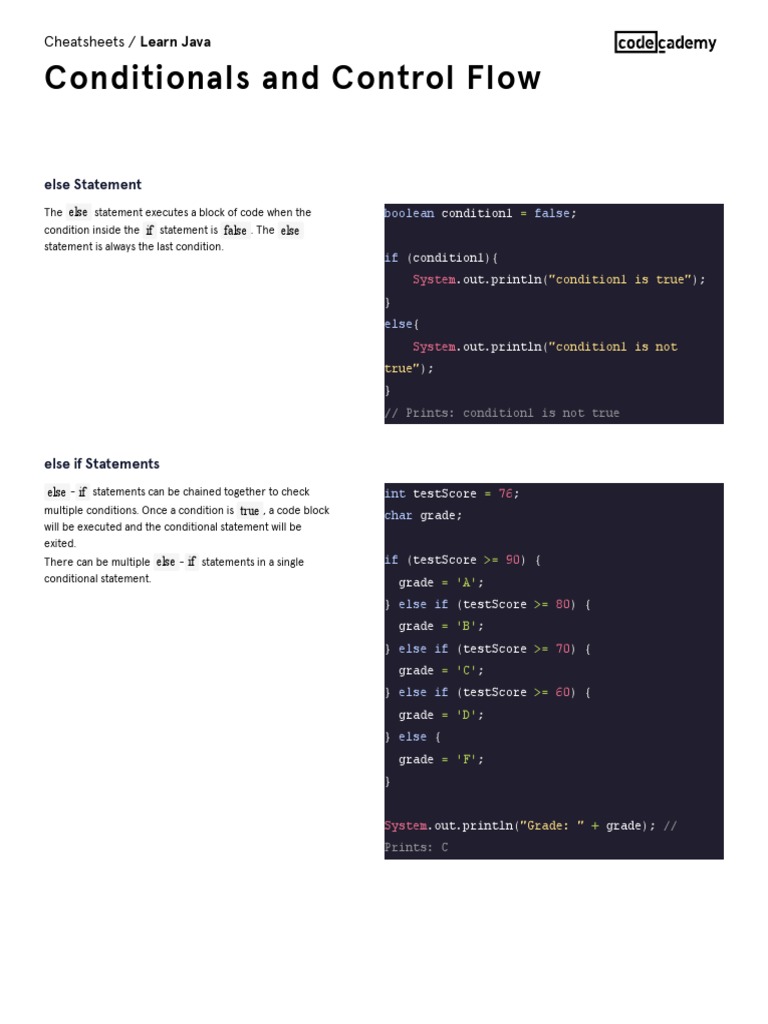 Learn Java - Conditionals and Control Flow Cheatsheet - Codecademy ...