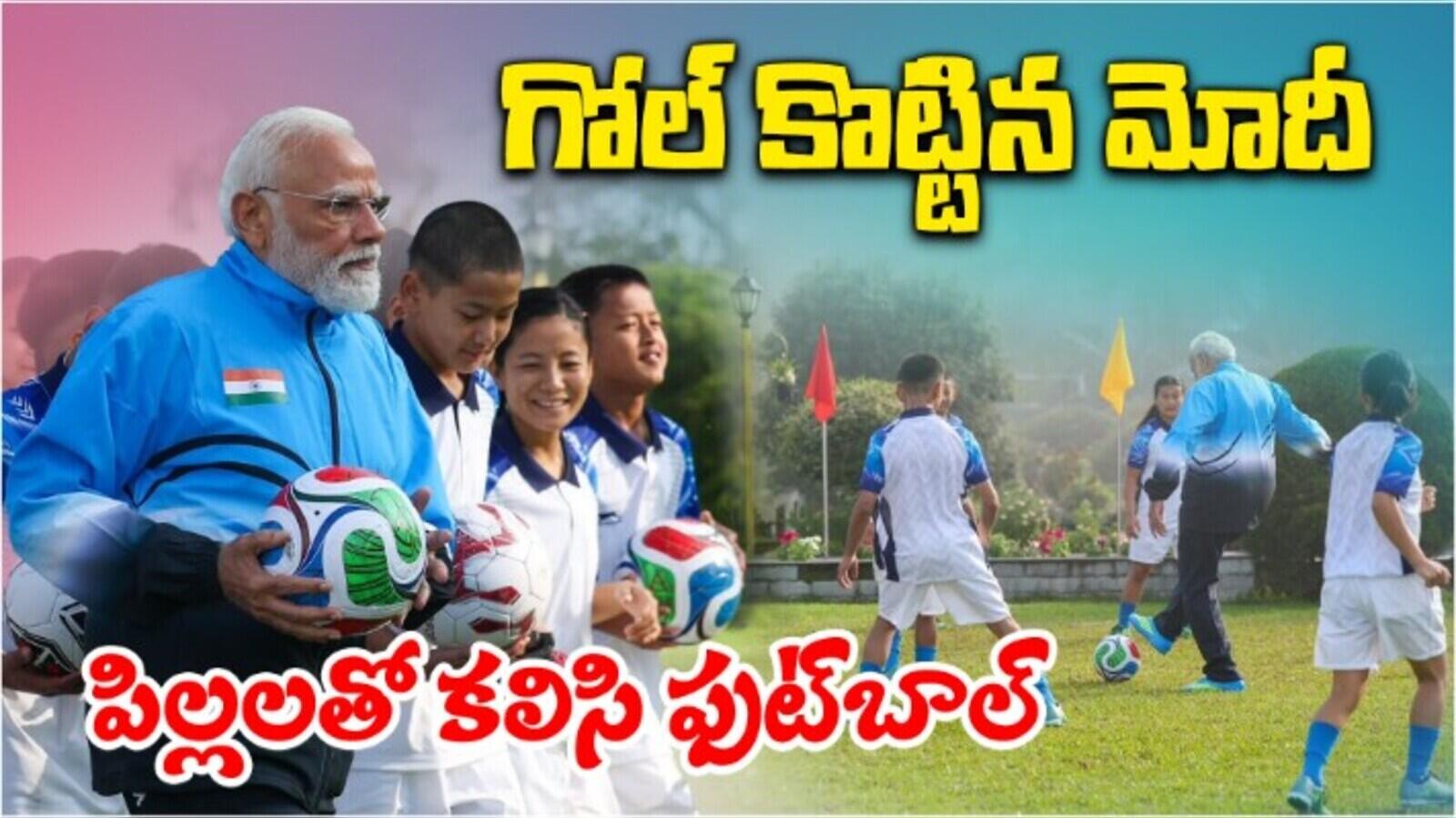 కుర్రాళ్లతో మోదీ ఫుట్బాల్.. గోల్ కొట్టగానే చప్పట్లు