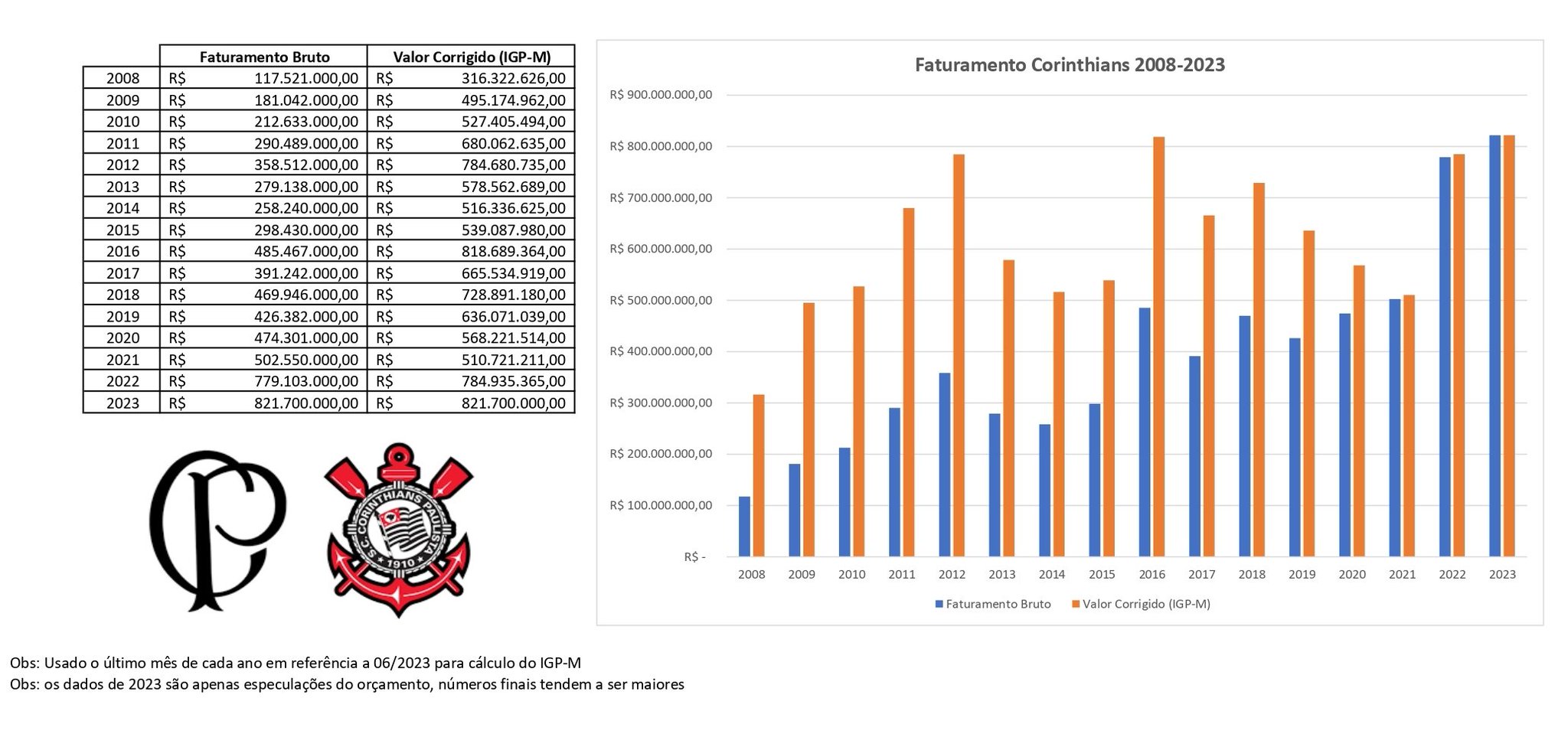 Balanços Timão on Twitter: "Faturamento do Corinthians entre 2008-2023 ...