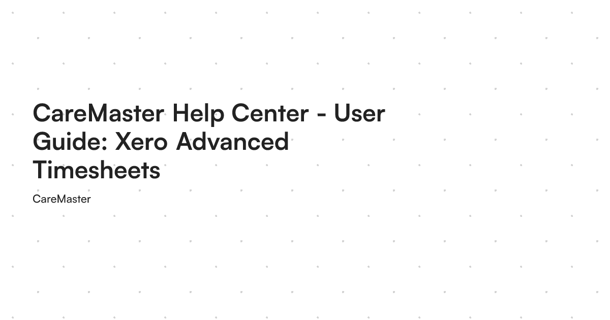 CareMaster Help Center - User Guide: Xero Advanced Timesheets