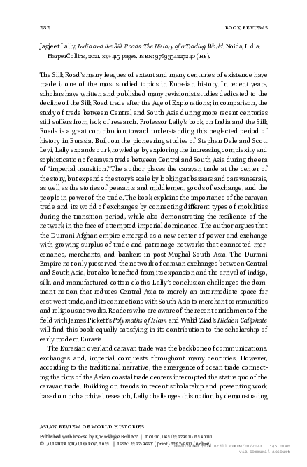 (PDF) India and the Silk Roads: The History of a Trading World, written ...