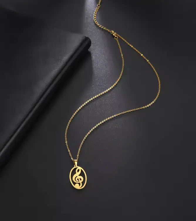 Gold Treble Clef Pendant in and Oval Frame with Chain — The Sydney ...