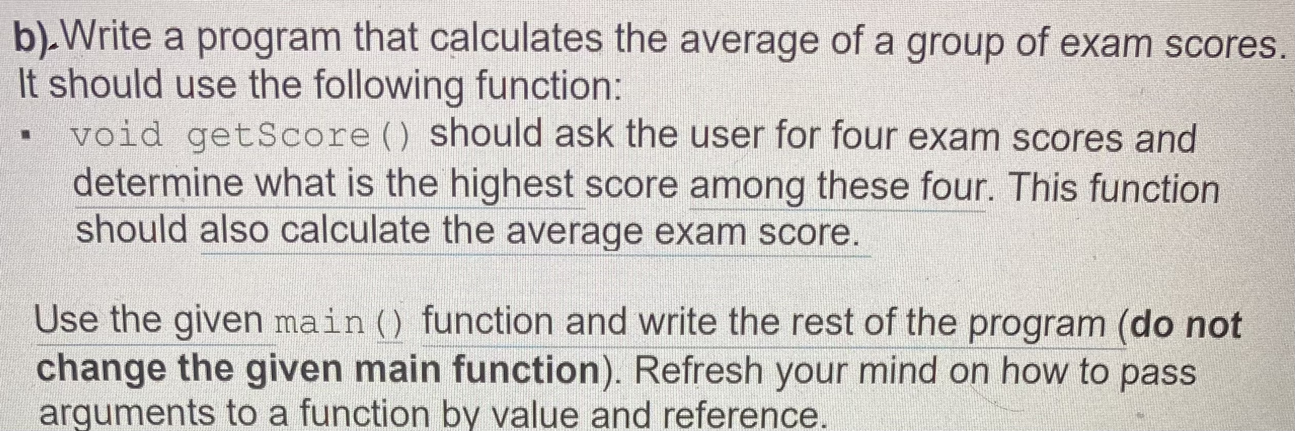Solved b). Write a program that calculates the average of a | Chegg.com