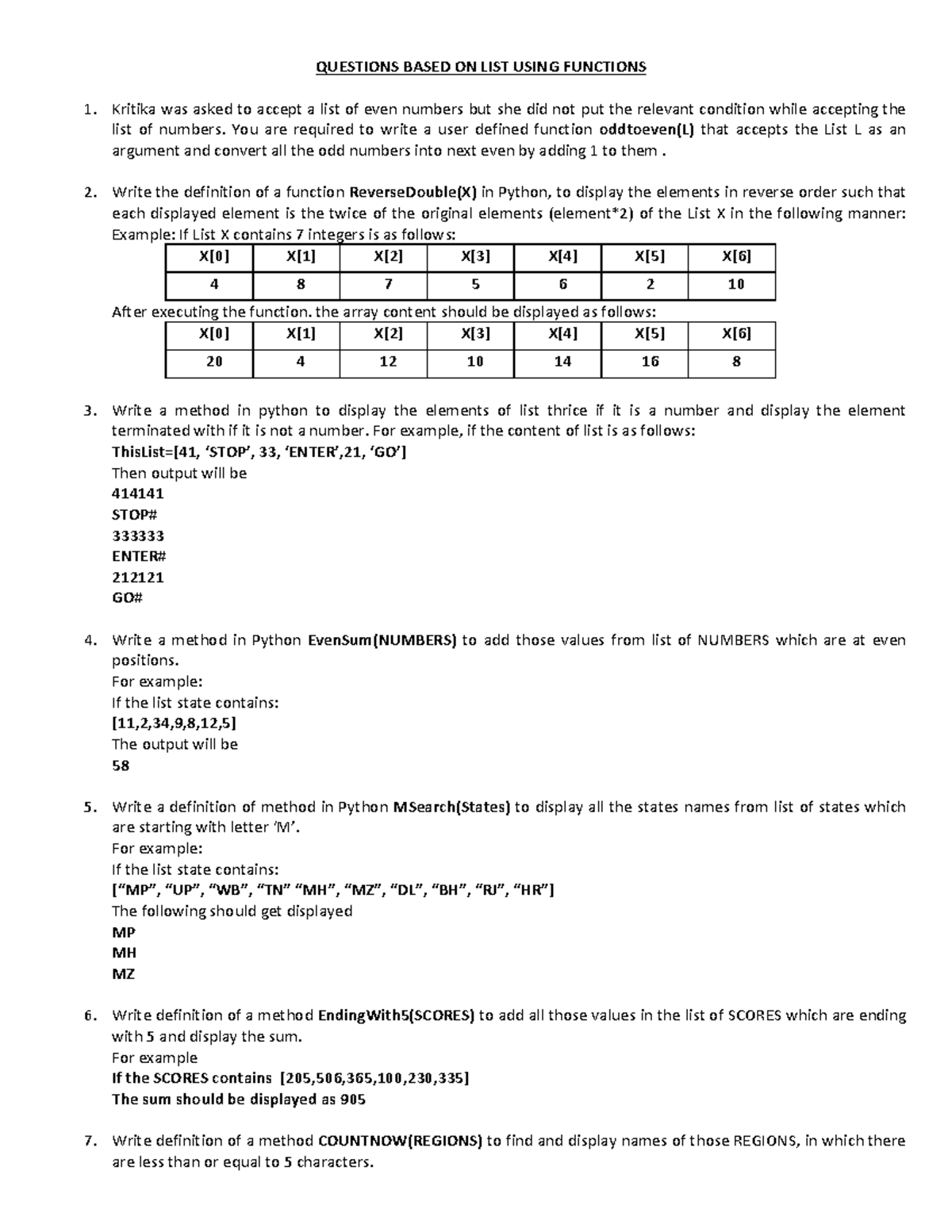 Function Definition List Based Questions (CS101) - Studocu