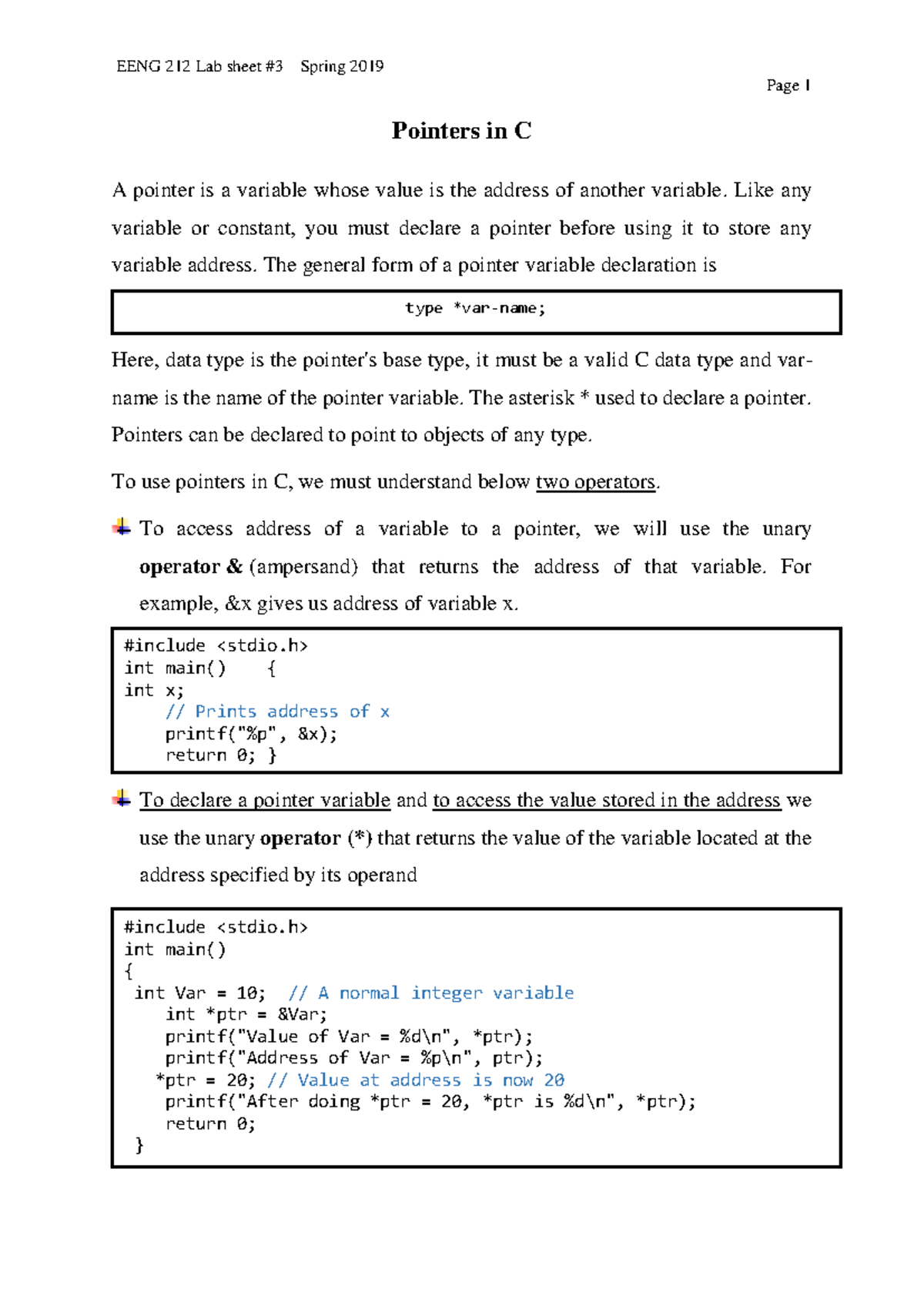 Pointers in C - Comprehensive Study Notes (CS101) - Studocu