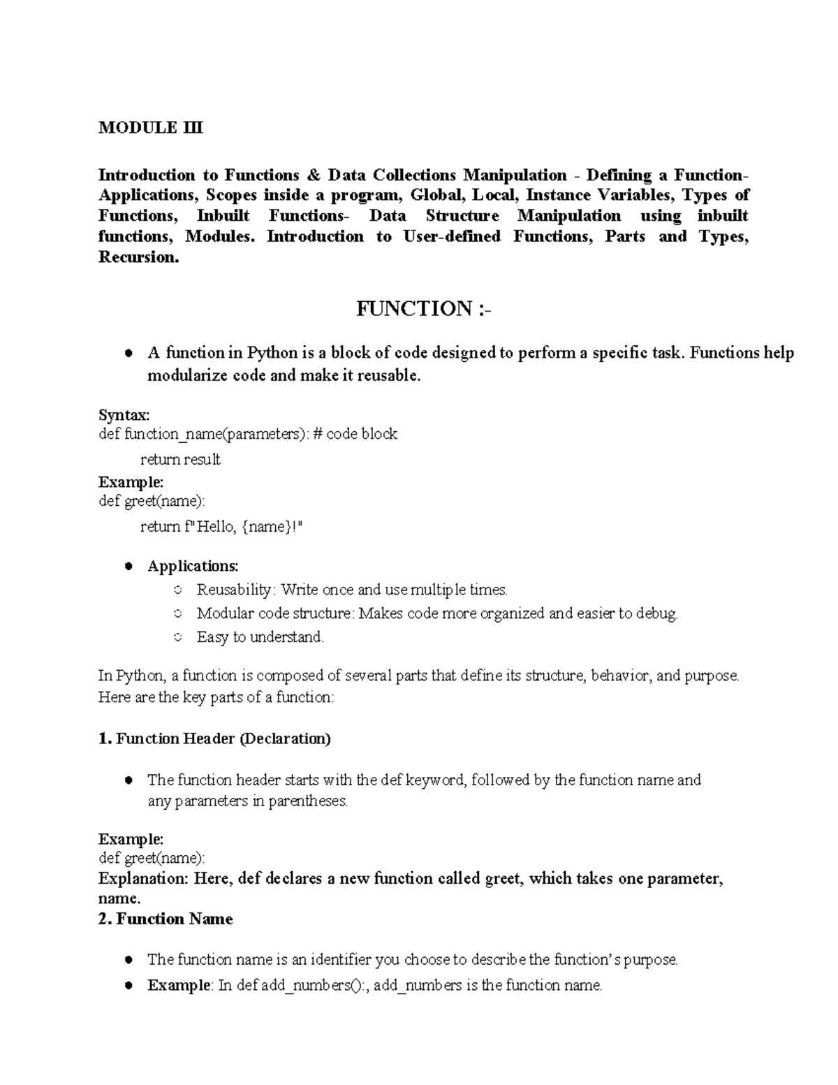 Unit V: Functions & File Handling Notes for Programming (CS101) - Studocu
